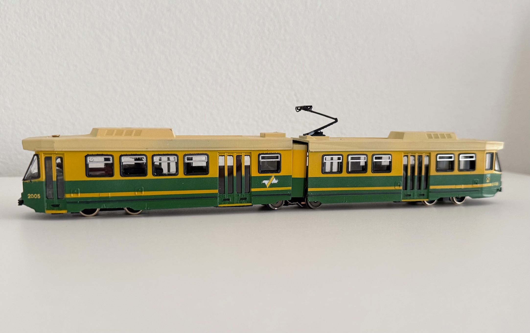 Ready to Run model of a B2 Articulated tram. Available in either HO 1:87 or OO 1:76 scale.