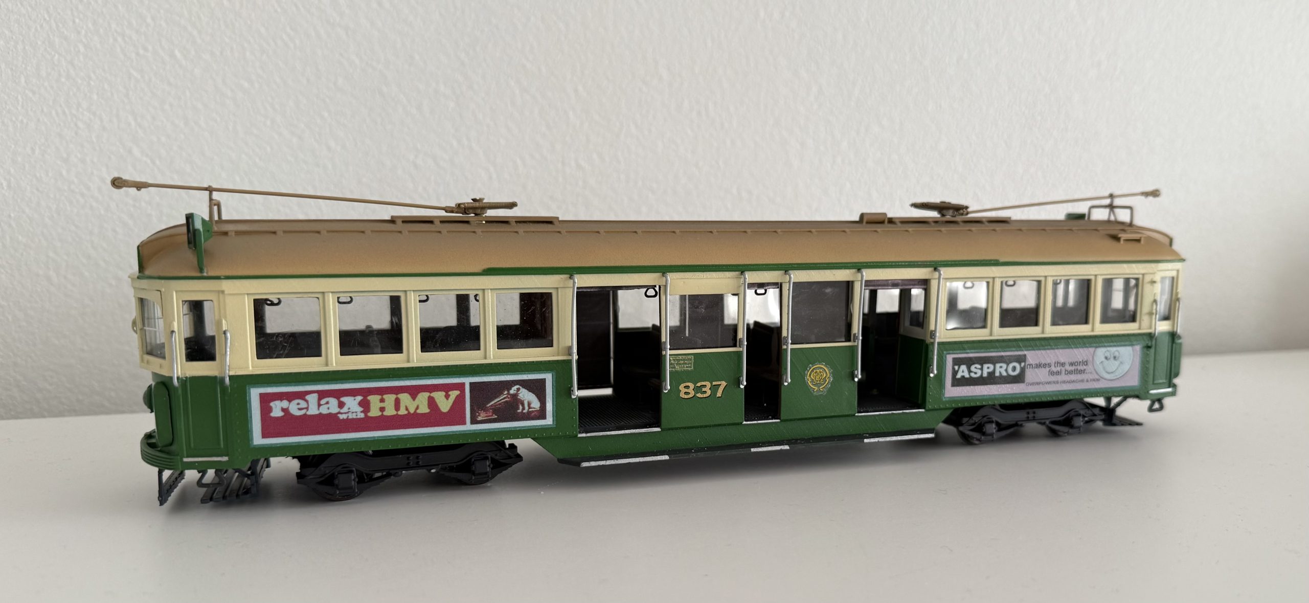 • Customizable color scheme, tram number, and period-accurate advertisements
